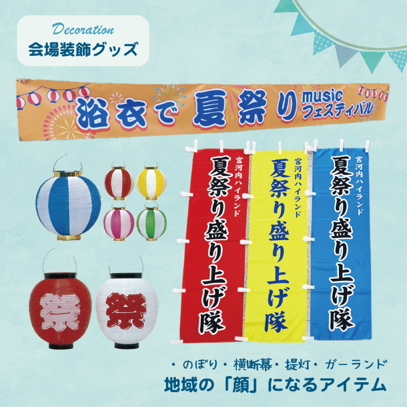 地域密着型のイベントだからこそ、オーダーメイドの装飾やアイテムが、イベントの質を大きく変えてくれます。