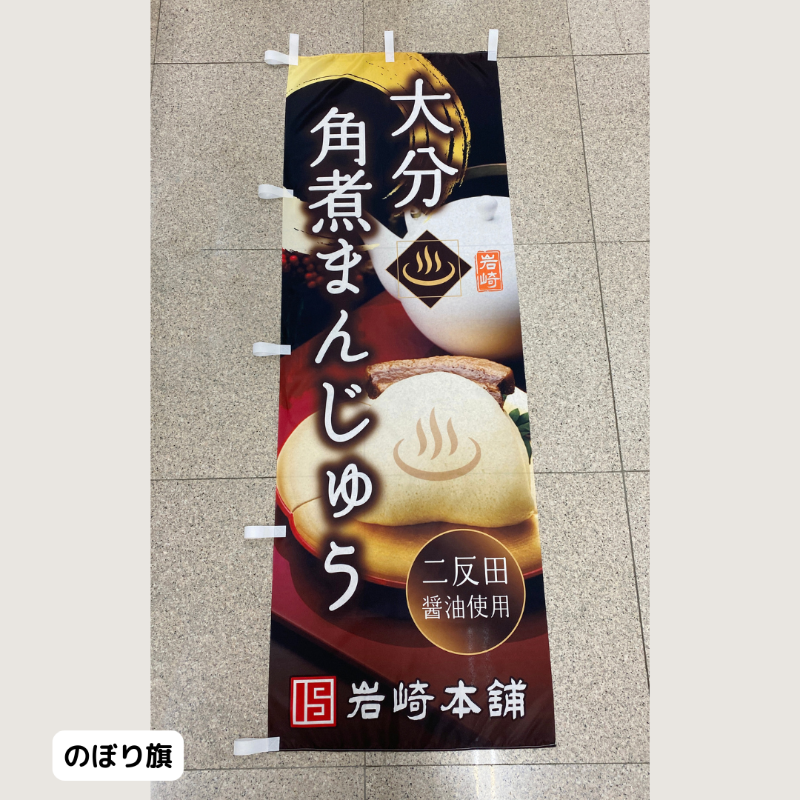 歩いているお客様の視界に一瞬で入るよう、文字サイズや配色、余白の取り方にも細かく配慮し、販促品としての役割を最大限に発揮できるのぼり旗に仕上がりました。