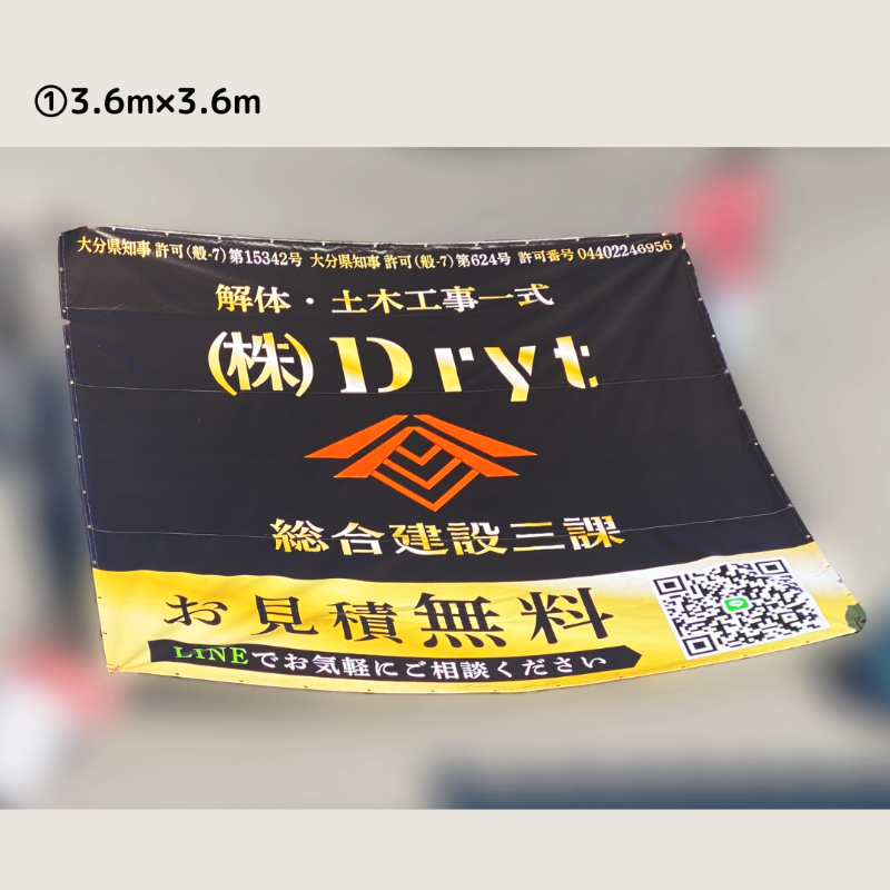 ① 3.6m四方の大型ターポリン幕