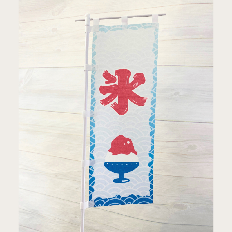 さらに追加で卓上ミニのぼりもご依頼いただきました。当日自治会本部で子どもたち向けにかき氷を販売するとのことで、こちらもかわいらしいデザインに仕上げています。