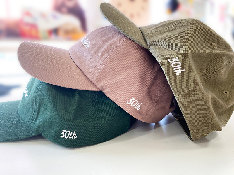 今回使用したキャップは、落ち着いた雰囲気のくすみカラー3色展開。スタッフの方それぞれの好みに合わせて選べるよう、色味のバランスにもこだわりました。