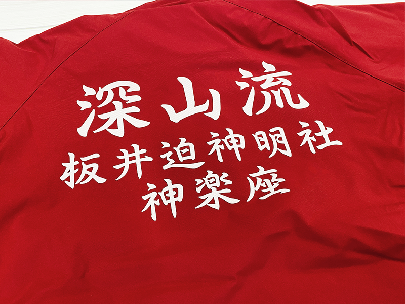 『深山流板井迫神明社神楽座』様からのご依頼で、ジャンパーを制作しました!