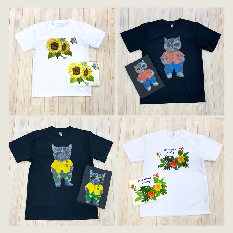 Tシャツのカラーは白と黒の2種類。前面にはイラストを大きく、背面の襟下位置にはサークルの象徴でもある虹のマークを印刷しています。